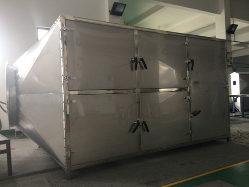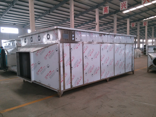 SD光催化氧化技术是有公司微波低温等离子体废气净化设备(专利号ZL201020269930.4)升华而成,污染物分子有引风机引入光催化区,大体要经历电子轰击、强氧化剂-OH的氧化、185nm以下紫外线光解、臭氧氧化、电子轰击、强氧化剂-OH的氧化、臭氧氧化、正氧离子氧化等过程;从结构空间上讲,污染物依次经过光触媒催化区、无极灯光解区、光触媒催化区、氧化区,设计停留时间1.5s,双层催化剂结构不但保证了催化比表面积;同时发挥了均布导流的高能,在有限的空间最大限度保证空间上和紫外线无极灯的充分接触,增加和提高活性粒子和污染物的接触机会和时间。
